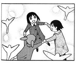 12月 12/27 よいお年を&明けまして すいません。 ■そろそろ出発しなければいけないのです。実家に戻るんですけど、そこからだとネットもできないし更新も当然できんのです。そんな環境に年明けまでいる予定なので、上のような訳の分からない挨拶になってしまいました。 ■まあ、明日のコミケ1日目にはサークルで参加しますので興味がある方は是非立ち寄って下さい。僕はいないけど、多分……(オイ)。 ■みんな、小銭用意してくれるかなぁ……と書いてみて、買いに来てくれる人に小銭の準備を強要しようと考えています、ってもう書いちゃってるし。 ■それでは! 12/22 オススメ 昨日今日で買ったものの中でオススメを。 ■昨日買ったのはDVDのSLIPKNOT『DISASTERPIECES』。昨日買ったはずなのにもう2回も観てるし(←バカ)。こういうのに耐性がないヒトにはバケモノ集団がバケモノ屋敷で暴れてる、としか見えないはず、というかそういう所も分かってて面白いんだけど。「My Plague」って曲は映画版『バイオハザード』にも使われてて、ビデオクリップにも映像が使われてるんだけど、なんかライブ映像と映画の映像のシチュエーション(観客に飛び込む、モッシュダイブでもがく、這いずり回ってヘッドバンキング……)が全くもって一緒なのはどういうコト? ■他にもアニメのDVD買ってるんだけど、まだもうちょっと経ってから全部観ようと思ってるんで封も開けてません。あ、でも『ギャラクシーエンジェル』は観始めちゃおうかな?(←結局買ったのカ!?) ■あとオススメなのは「エアジョーダン7レトロ」。もう10年くらい前のバッシュになるの?ずいぶん経ったんだなぁ……。こいつは全体的に白いヤツ(新色)と全体的に黒いヤツ(以前にもあった色)が今回復刻となりました。なんか白い方はあんまりカッコよくないなー。ま、白い方はもともと履き潰そうと思ってたからいーや。黒い方は大事に履こう。ってことは、そうです。2足買ってます。 ■あっ、よく見たらシューレースが以前のと全然違う!!以前のよりは耐久性がありそう。他にも刺繍のジャンプマンロゴが微妙にヘンになってたり(前から指とかあったっけ?)、横幅が広くなってるような印象を受けるけど、どっちでもいいや。 ■んでまあ、現在の僕の心境からいくと、もうそろそろエアジョーダンもいいかな、と。来年は早いうちに8のレトロが出るらしいけどアレはねぇ……前持ってたし。4はもう一度出してくれたら欲しいなぁ。出てた時にはちゃんとチェックしてなかったのと金がなかったのとがあって買えなかったのよ。それとあとは2ね。2って復刻してたっけ?なんか僕のイメージだと1が最初に復刻してた時(けっこう前。90年代中盤。まだ『スラムダンク』やってたハズ)に一度出たような気がする。 ■後は『ゼルダ』はオススメしときます。でも僕はまだやり始めてないんだけどね、っていうオチ。いや、ネットやってたりコミケ用の作業してると、けっこうゲームって触らなくてもいいもんだったりしてさー……。 12/21 優しい雪 ![]() ■何でしょう?これは。 ■答えは「上を向いて雪の降っている所を写真に納めた」ものでした。午前中は雨のはずだったのになぁ……。 ![]() 普通に撮るとこうなってる。 ■今日のは何やらエラくおおきな雪の固まり……いや、全然固くないから微妙に表現が違うかも……が降ってきてまして、傘をさしていると目に見えて積もっていくのでちょっとコワ。 ■でもでも、この前から感じていたことなんですけど、全然東京なんかの雪とは質が違ってるんですよ!積もり方も違うし(第一『積もる』こと自体滅多にないわけだけど)、当然踏んだ感触も違うし降り始めは楽しくてしょーがないです。『パト2』なんかの雪のシーンなんて足下にも及ばないですよ(当然といえば当然か……)! 楽しいのは降りはじめだけだけど。何日かしてくると積もった雪もだんだん固くなって凍って、邪魔にしかならなくなってきて悲しいし。 ■まー今日は休みだしいいか……と思いながらずーっと家にいて作業。ちなみに外に出たのはクルマのワイパーを上げにいったのみで、そのついでにデジカメを持っていきました。にしても、もっとたくさん写真撮ったんだけど、全然うまく撮れなかったので見せられません。シャッタースピード遅すぎ!!ほとんど全部が「なにやら雪よりも恐ろしい何かがたくさん降ってる写真」になってしまいました。やっぱり安いデジカメはダメだ……。 ■で、作業の方はもう売り物を描く作業は終わっているので印刷しながらサークルに置くポップ?を作ってます。ベースはできたからあとはカラーリングだ!! 12/15 作業 休みの日によくまあこんなに作業をするなぁと思いました。 ■よくこんなにすき好んで部屋で作業をしてるものです。そのおかげでぼちぼち出来上がってきてるんですけどね。 ■作業自体はフォトショップがたまに謎のダイアログを出しますが(日本語関係がやっぱりイカれてる……)、作業のそれ自体には影
